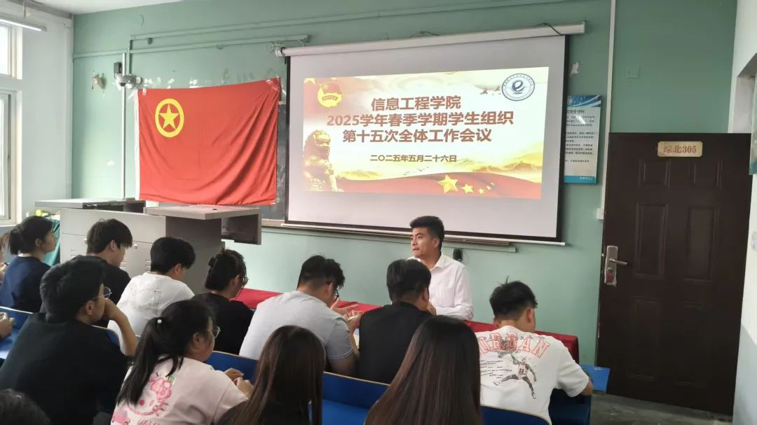 为总结工作成效、明确后续规划,提高学生干部工作执行力,增强组织凝聚力,5月26日,信息工程开元平台(中国)科技公司于综合楼北楼305教室开展2025学年春季学期学生组织第十五次全体学生会议。本次会议由学生组织指导老师豆耀鹏主持,各学生干部共同参与。