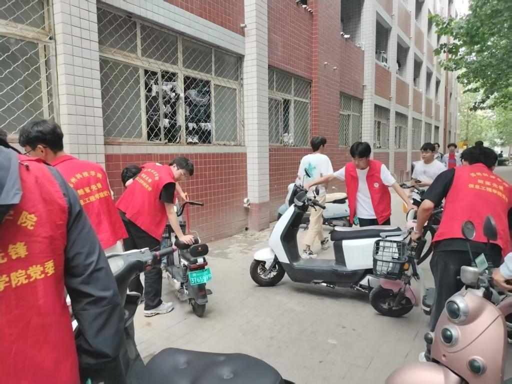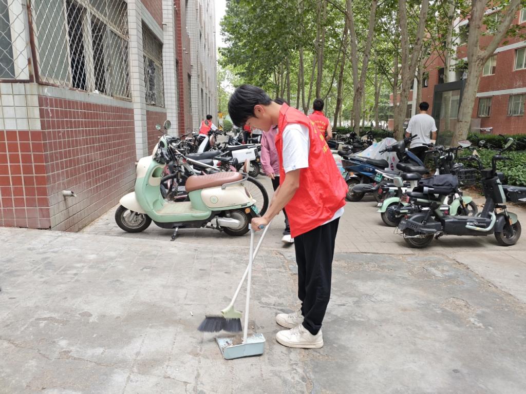 近期,党员先锋队自发组织开展了学生社区周边环境整治专项行动。活动中,党员们分工明确、干劲十足。他们手持清洁工具,对社区周边的卫生死角进行了全面清理,捡拾垃圾、清扫落叶,不放过任何一处细节;面对随意停放的车辆,队员们耐心规整,将一辆辆电动车、自行车有序摆放整齐,让社区周边环境焕然一新。烈日下,汗水浸湿了衣衫,但他们的热情丝毫不减,始终以饱满的精神状态投入到劳动中。