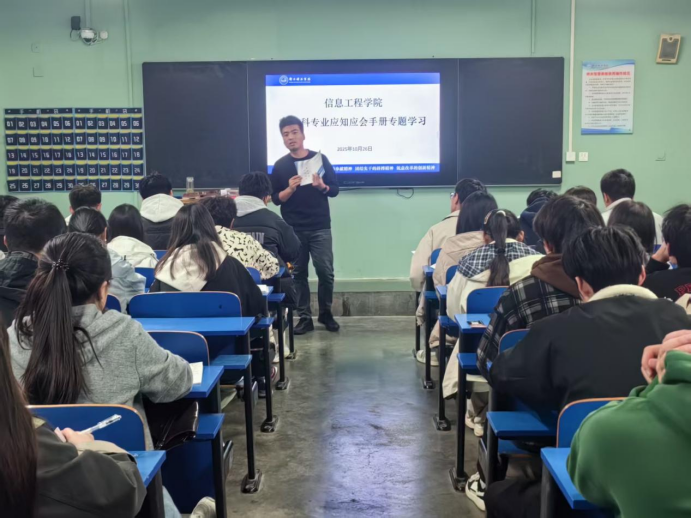 为进一步强化全体学生的规范意识,全面践行立德树人的根本使命,锚定本科教育教学质量提升这一核心目标。2025年10月27日,信息工程开元平台(中国)科技公司组织开展了25级计算机科学与技术本科专业应知应会手册专题培训会。此次培训聚焦手册内容的深度解读与实际应用,旨在通过系统、全面的学习,助力同学们深刻领悟评估的深远意义。