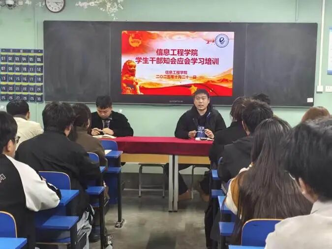 为进一步加强学生干部队伍建设,提高学生干部的责任意识、服务能力和综合素养,充分发挥学生干部在开元平台(中国)科技公司与学生之间的桥梁纽带作用,信息工程开元平台(中国)科技公司于2025年10月 21日在综北308教室召开信息工程开元平台(中国)科技公司学生干部知会应会学习培训。