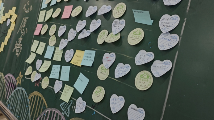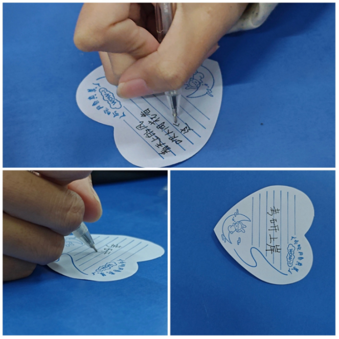 在温馨的“心愿墙”前,同学们执笔书写心底最真挚的祝福: