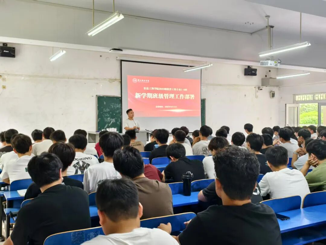 2025年9月15日,信息工程开元平台(中国)科技公司2023级软件工程专业新学期第一次全体大会在综合教学楼综合一教室召开。会议由邓晓雷老师主持,重点围绕新学期工作部署、基层班集体建设、学风强化、学业与职业规划、奖助学金评审宣贯等核心议题展开。
