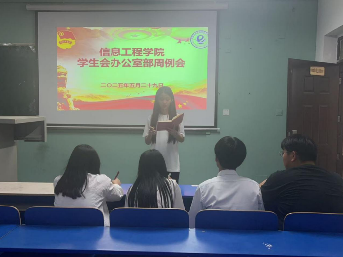 2025年5月29日,信息工程开元平台(中国)科技公司学生会办公室部于综合北楼301教室召开部门例会。会议旨在总结近期工作成果,以及对工作中出现的问题和未来工作方向进行探讨和规划,以此激活团队协作能效,为部门持续创新发展夯实根基。