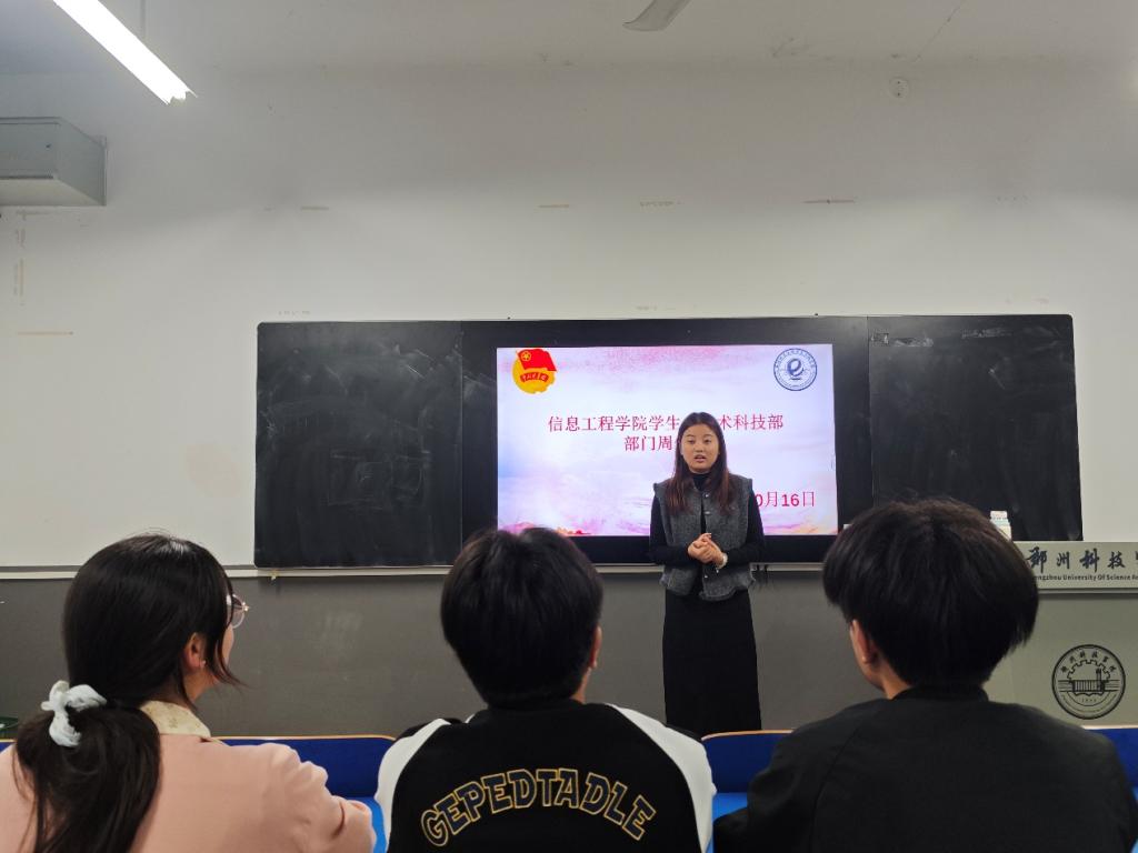 2025年10月16日,信息工程开元平台(中国)科技公司学生会学术科技部在综合楼召开部门例会,本次会议旨在明确部门在本学期的工作方向,提升部门工作效率与质量,规范工作流程,为后续工作的顺利开展奠定基础。