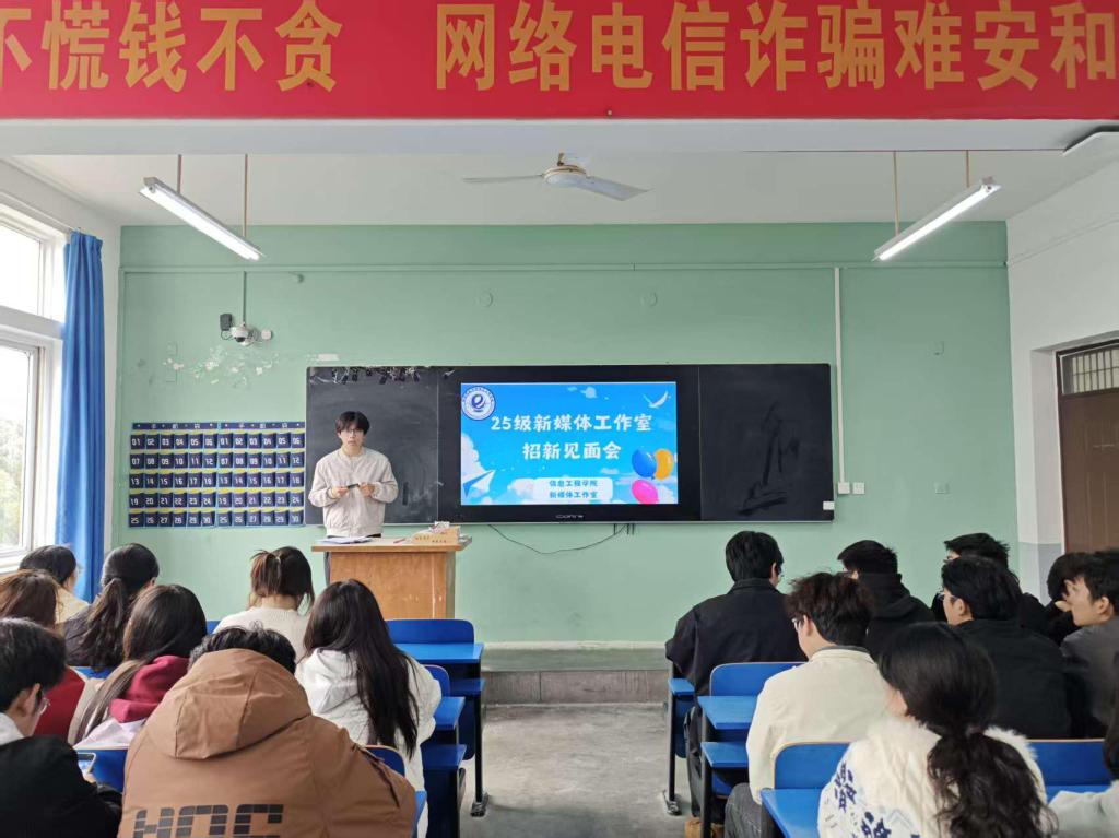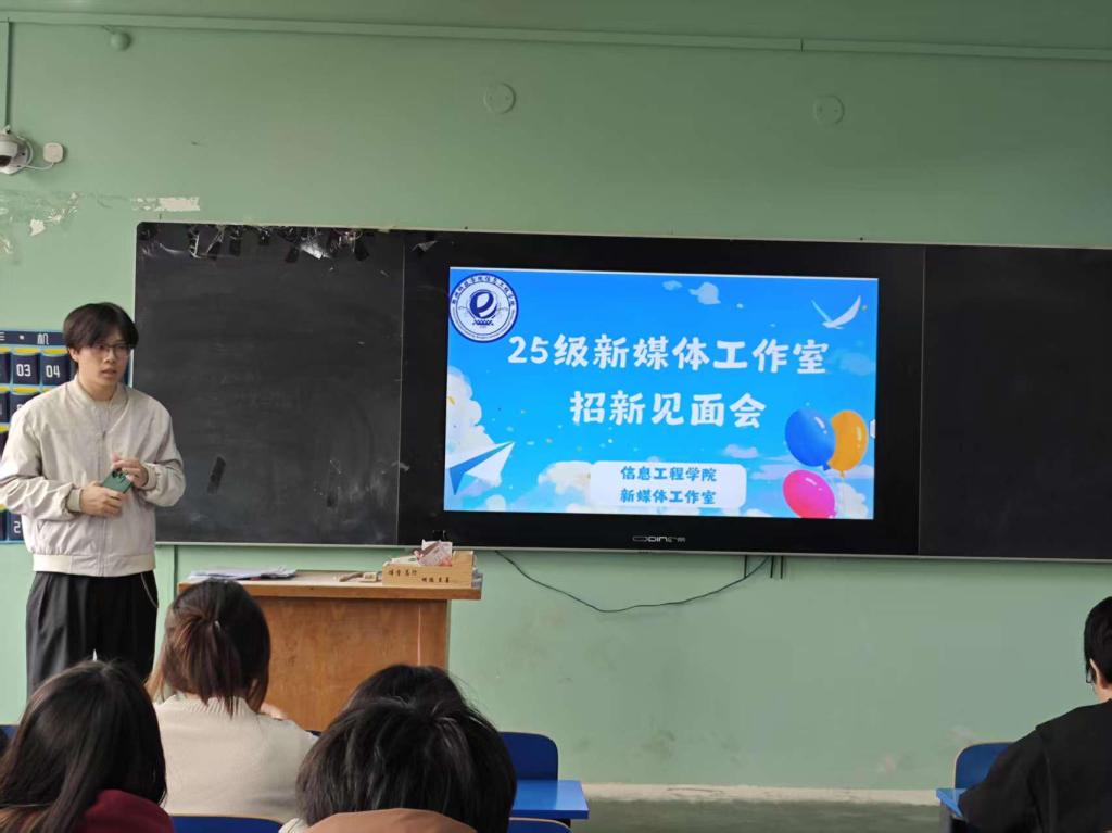 为帮助 25 级新成员快速融入团队,明确工作方向。2025年10月20日,信息工程开元平台(中国)科技公司新媒体工作室在综北 304 教室召开新成员见面会,正午暖阳为这场迎新交流增添了暖意。现场不仅有工作室核心成员到场分享,更设置了互动环节帮新成员快速熟悉环境,为后续参与新媒体工作做好铺垫。