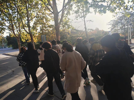 首先,班长韩欣雨组织同学们在综合楼前集合,交代给同学们跑步任务及任务完成后集合地点,并嘱托同学们注意安全,做好热身。而后,同学们积极参与,完成热身后,按照各自的路线去完成各自的跑步任务。任务完成后,同学们到指定的地点集合,并聆听了班长韩欣雨同学的总结,最后解散。活动圆满成功。