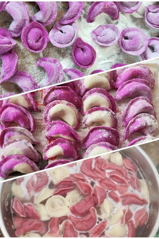 除夕那天,我早早地起床,和妈妈一起准备年夜饭。包饺子时,我突发奇想,用火龙果汁和面,做出了粉红色的饺子皮。我们一边包饺子,一边聊着家常,其乐融融。当粉红色的饺子端上桌时,全家人都惊喜不已。看着一家人其乐融融地吃着饺子,我感受到了浓浓的幸福。那天晚上不仅有粉红色的饺子,当然也少不了鱼,毕竟寓意着年年有余,所以我做了一道酸菜鱼,真的还挺好吃的。