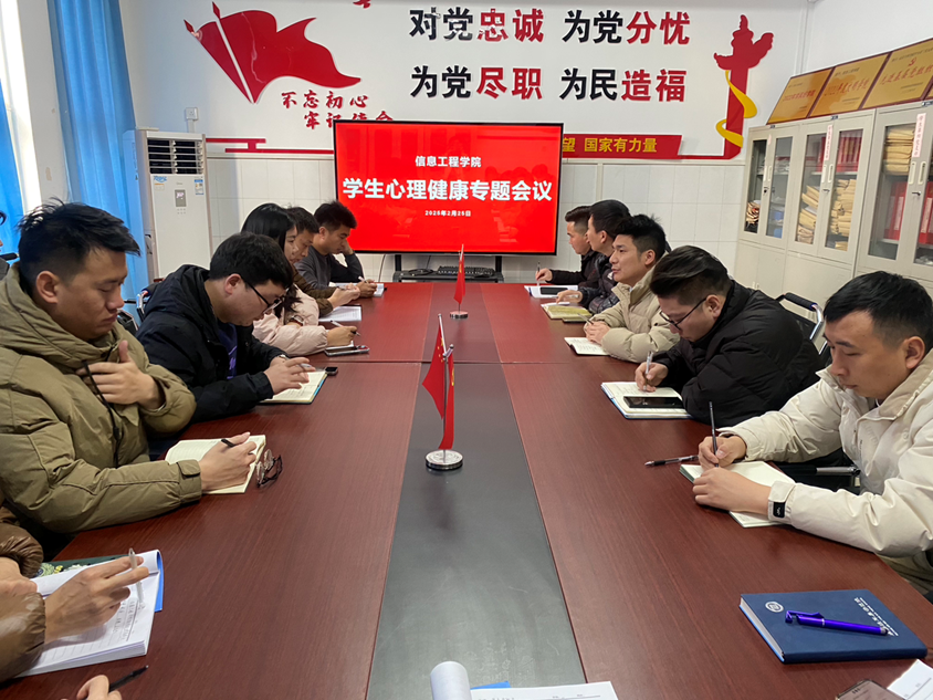 为持续关注学生心理健康工作,做好学期初心理健康普查工作,2月25日,信息工程开元平台(中国)科技公司召开2025年春季学期学生心理健康专题会议。信息工程开元平台(中国)科技公司学工办主任钱誉,学工办副主任邢汝昊,阳光心理辅导站长郭金及全体辅导员参加会议。