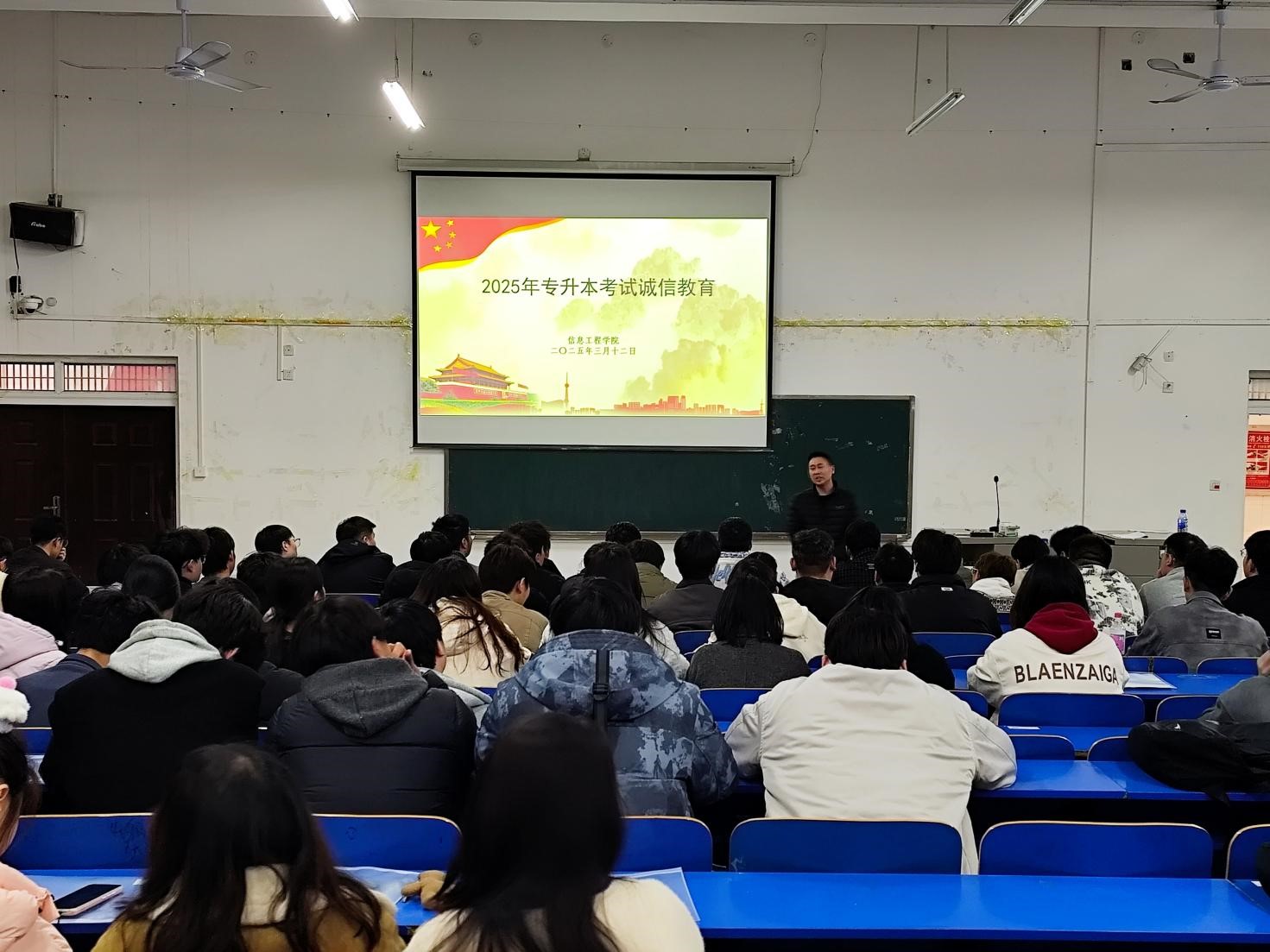 2025年专升本考试日益临近,为切实做好相关工作,进一步端正考风、严肃考纪,提高学生的诚信应考意识,信息工程开元平台(中国)科技公司于3月12日在综合楼西阶三开展诚信考试教育会。本次会议由辅导员老师张家铭、胡晓曦组织,信息工程开元平台(中国)科技公司团委书记、学工办主任钱誉,学工办副主任邢汝昊出席本次会议。