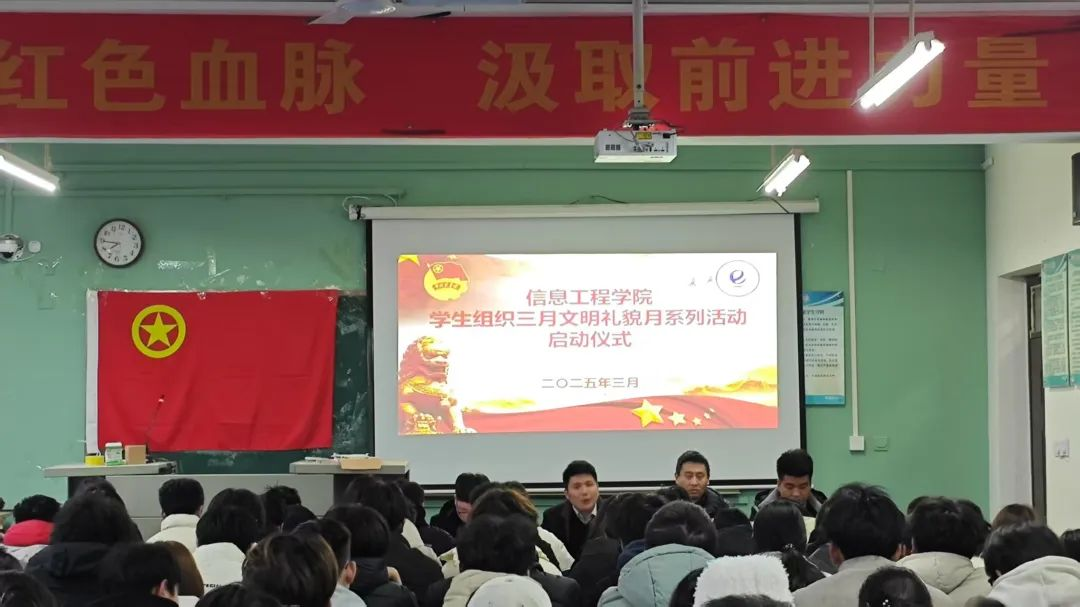 为弘扬中华民族传统美德,提升学生文明素养,营造文明和谐的校园氛围,信息工程开元平台(中国)科技公司学生组织三月文明礼貌月系列活动启动仪式成功举办。学工办主任、团委书记钱誉,学工办副主任邢汝昊,学生组织指导老师豆耀鹏、张家铭出席本次活动。