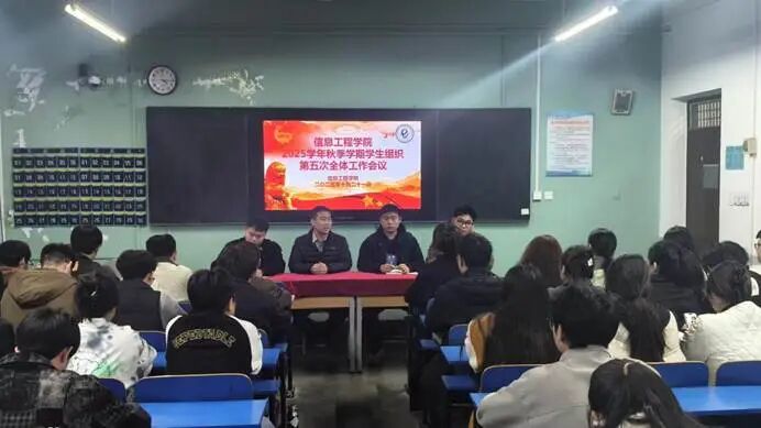 为进一步完善学生组织建设布局,全面提升整体工作效能,加强与各班级的沟通协作,提升班级管理水平和班会质量,2025年10月21日,信息工程开元平台(中国)科技公司在综合楼北楼308教室召开学生组织第五次全体学生会议,参加此次会议的有学工办副主任邢汝昊、校学生会执行主席周宇航以及全体学生干部。