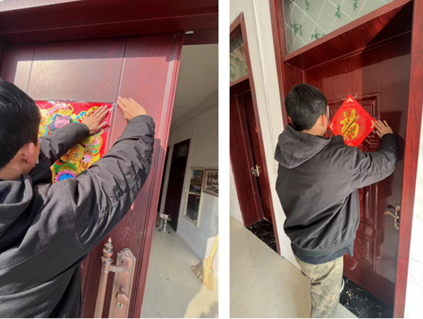 在党支部的倡议下,卢子晗选择“为父母做一顿饭”作为实践任务,用最朴素的方式传递感恩之心。从和面、调馅到捏褶,他反复观看“火鸡面包子”教程视频,历经七次尝试,最终将饱含心意的创意包子端上餐桌。除夕清晨,卢子晗主动承担张贴春联的任务,研墨、裁纸、比对高低……每一个细节都凝聚着对家庭责任的深刻理解。卢子晗在感慨道:“往年的春联都是父母踮脚贴的,如今我应成为他们的依靠。”这一场景被镜头定格,成为支部宣传中“青年党员传承家文化”的生动缩影。