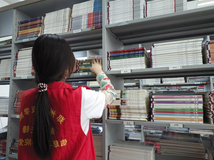 活动中,支部成员化身“流动的红色指引”:在自助借阅区,他们手把手指导老年读者使用智能设备,帮助其跨越“数字鸿沟”;在少儿阅读角,通过趣味故事分享、绘本整理,为孩子们营造温馨的阅读环境;在书库内,大家严格按照索书号分类排序,用“火眼金睛”纠正错架图书,让知识归位更有序。