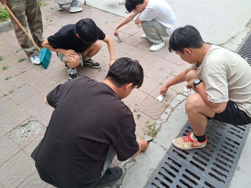 操场边缘的碎石堆、停车场角落的纸屑、绿化带深处的塑料袋……面对不易清理的卫生死角,大家也是尽自己的最大努力把其打扫干净,同学们的积极参与也让劳动的热情在校园中传递蔓延。