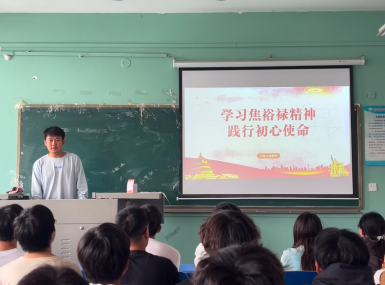 徐鹏宇同学通过视频,重现了焦裕禄同志在兰考治沙时“生也沙丘,死也沙丘”的赤诚岁月,视频中他拄着木棍查风口、探流沙的画面震撼心灵,让入党积极分子们深刻理解了“焦裕禄精神”的时代内涵。