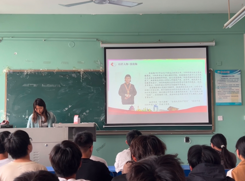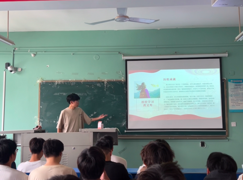 杨淑雅同学以细腻的笔触,通过PPT展示张桂梅校长创办华坪女高的艰辛历程,当屏幕上闪过山区女孩们在课堂上求知的眼神、张校长因过度劳累贴满膏药的背影时,全场响起经久不息的掌声。