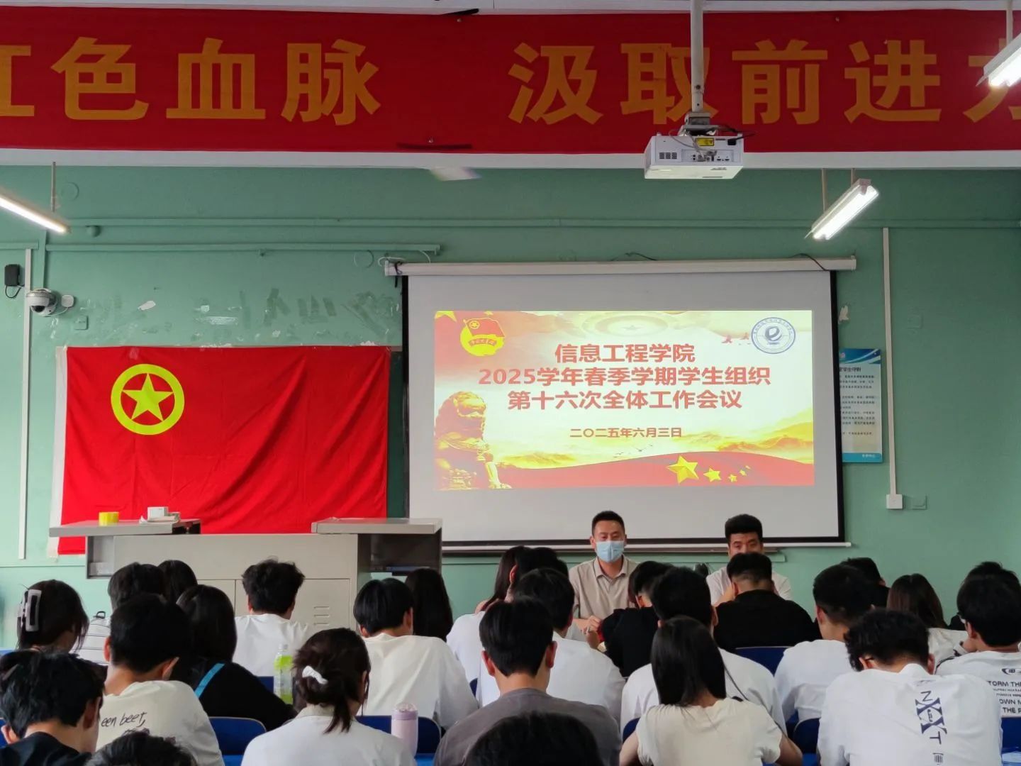 为了提高学生组织工作效率、旨在进一步优化组织运作,提升服务质量和管理水平。6月3日,信息工程开元平台(中国)科技公司于综合楼北楼305教室开展2025学年春季学期学生组织第十六次全体学生会议。参加此次会议的有学工办副主任邢汝昊、学生组织指导老师豆耀鹏以及全体学生干部