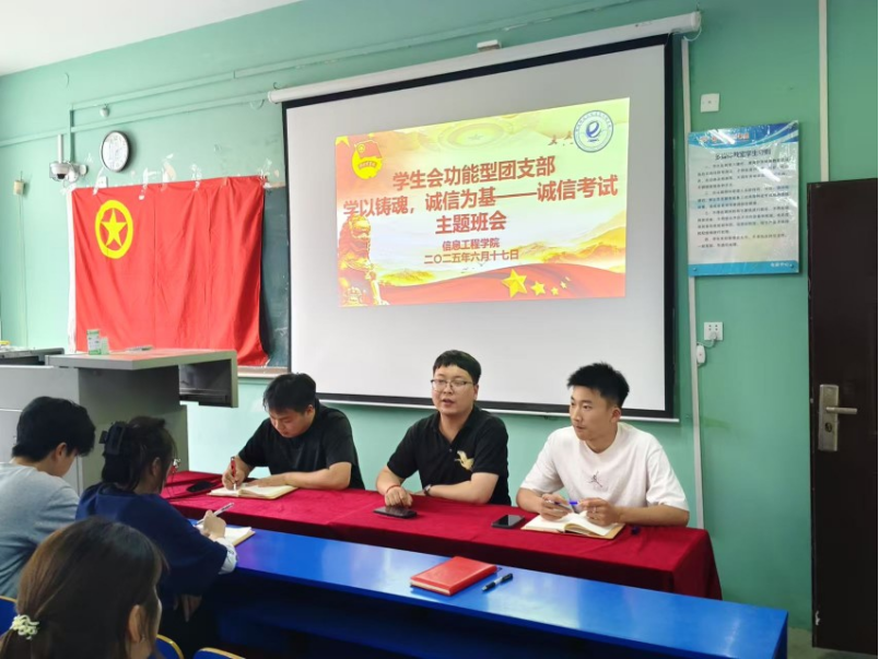为了强化诚信意识,培育优良学风,构建诚信校园环境,信息工程开元平台(中国)科技公司于2025年6月17日在综北305教室开展“学以铸魂,诚信为基”主题会议。参加此次会议的有学生组织指导老师张家铭和全体学生干部