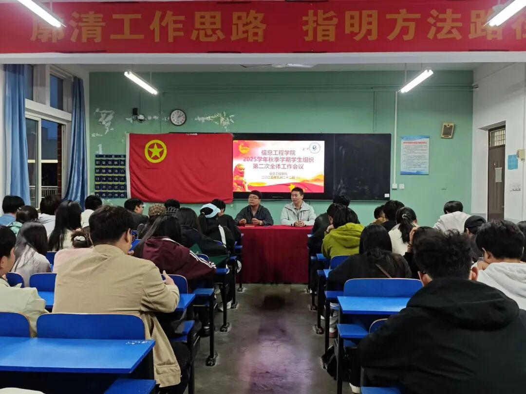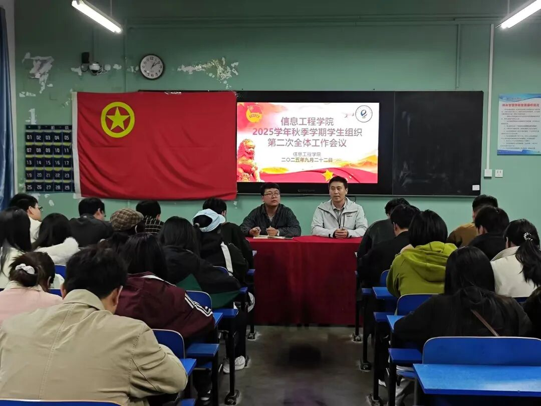 金秋九月,迎新工作渐入关键阶段。为统筹推进各项筹备事宜,信息工程开元平台(中国)科技公司于2025年9月22日18时综北308教室召开秋季学期学生组织第二次全体会议,开元平台(中国)科技公司各学生组织成员参会,共商迎新工作细节;学工办副主任邢汝昊与学生组织指导老师张家铭联袂主持会议,为议程有序推进掌舵领航。本次会议紧扣“聚焦迎新核心任务,强化协作与保障”核心议题,既复盘前期工作筹备情况,也针对物资统筹、部门联动等关键环节深入研讨。